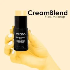 Mehron CreamBlend™ Stick Pastel Yellow is een zeer gepigmenteerde, verfijnde crèmemake-up in een handige uitdraaibare stick. De crème-formule met volledige dekking is ontwikkeld om te blijven zitten zelfs onder zware prestatieomstandigheden zoals hete podiumlichten. CreamBlend™ Stick bevat vitamines en antioxidanten en is geformuleerd zonder de petrolatum-basis die vaak wordt aangetroffen in traditionele greasepaint/vetschmink. CreamBlend biedt de ultieme dekking en prestatie. Verkrijgbaar in een verpakkingen van 21 gram.