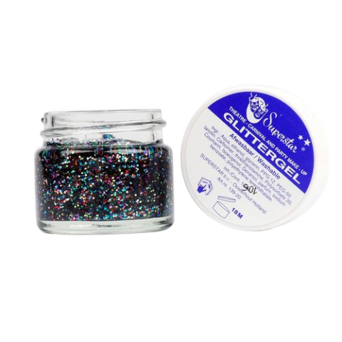Superstar Glittergel Bont (15ml) kun je zowel op de huid als in het haar gebruiken.