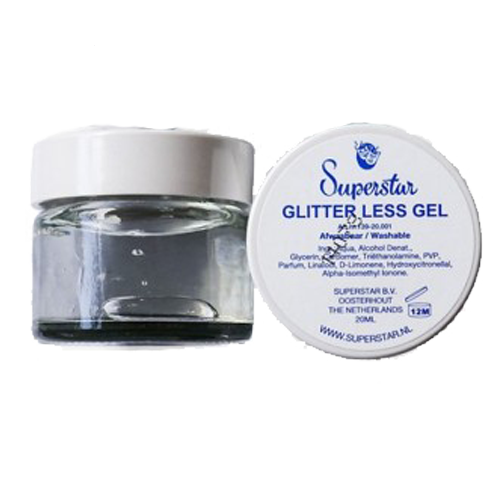 Superstar Glitterless Gel (15ml) kan je zowel op de huid als in het haar gebruiken, maar is de basis van alle Superstar Glittergels. Aan deze gel kun je alle soorten cosmetische glitter toevoegen om je eigen mix te maken. Van gewone glitter tot de chunky glitters. Uiteraard is de Glittergel ook al in diverse kleuren verkrijgbaar.