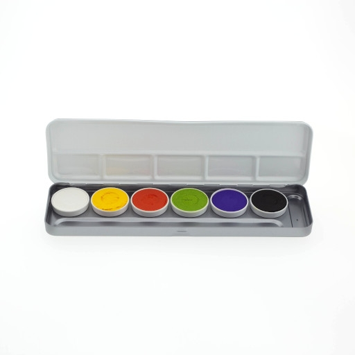 SuperStar Schminkpalette, 6 kleuren Halloween palette bevat alle kleuren die je nodig hebt bij het maken van je kinderschmink voor de Halloween. Deze water schmink kleuren dekken zeer mooi op de huid.