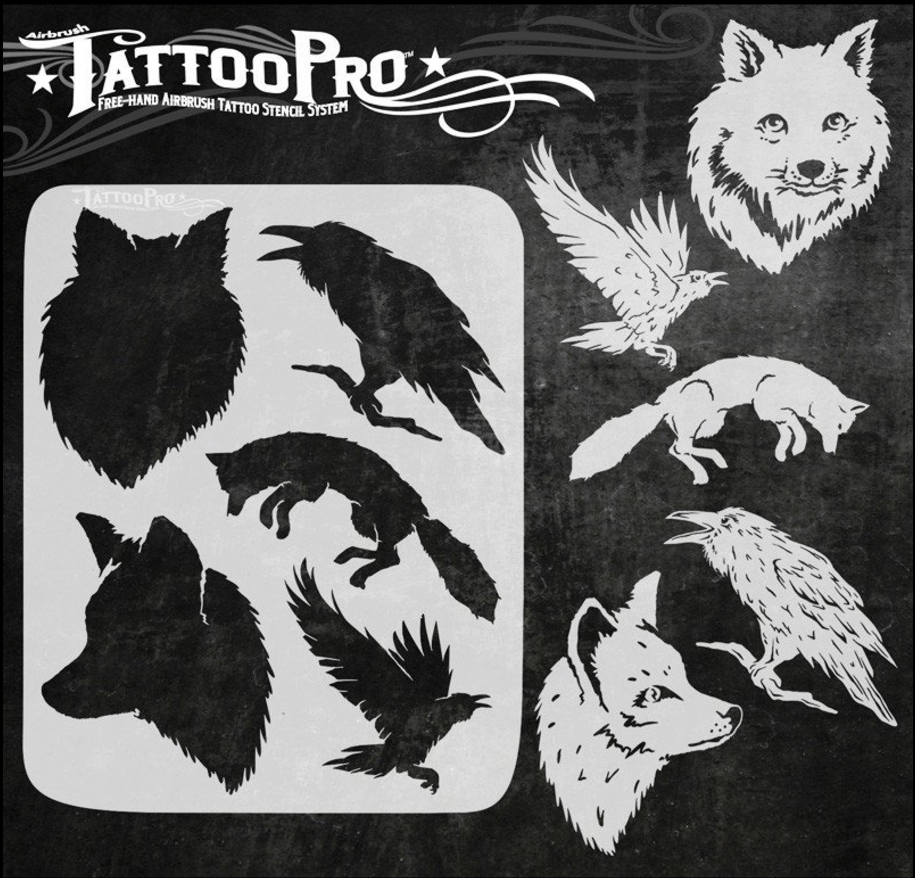 Wiser’s Airbrush TattooPro Stencil – Fox & Crow zijn Airbrush sjablonen speciaal ontworpen door Bodypaint en Graffiti artist Wiser Oner.