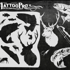 Wiser’s Airbrush TattooPro Stencil – Hunting & Fishing zijn Airbrush sjablonen speciaal ontworpen door Bodypaint en Graffiti artist Wiser Oner.