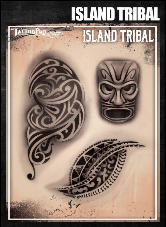 Wiser’s Airbrush TattooPro Stencil – Island Tribal zijn Airbrush sjablonen speciaal ontworpen door Bodypaint en Graffiti artist Wiser Oner. Van de sjablonen kun je zowel de positieve als de negatieve delen gebruiken, als je ze uit het vel drukt. Eindeloos te combineren met de andere TattooPro stensils, zodat er iedere keer weer een originele Airbrush Tattoo ontstaat.