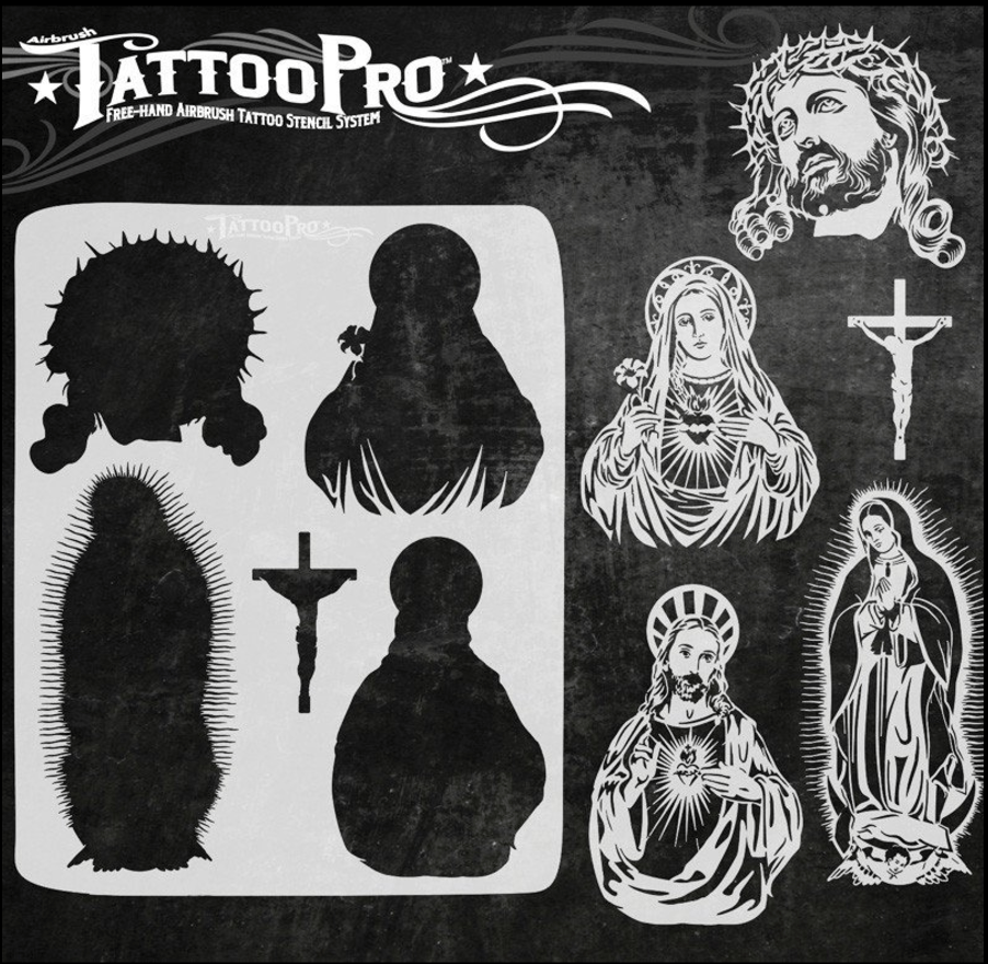 Wiser’s Airbrush TattooPro Stencil – Jesus & Mary zijn Airbrush sjablonen speciaal ontworpen door Bodypaint en Graffiti artist Wiser Oner.