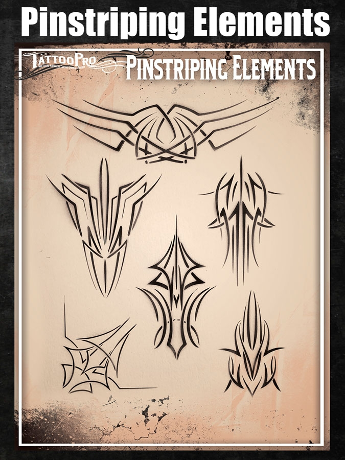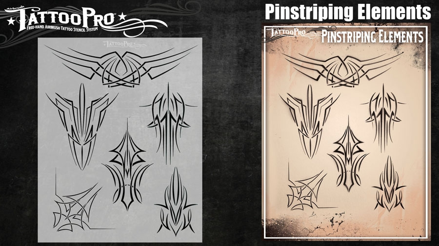 Wiser’s Airbrush TattooPro Stencil – Pinstripingzijn Airbrush sjablonen speciaal ontworpen door Bodypaint en Graffiti artist Wiser Oner. Van de sjablonen kun je zowel de positieve als de negatieve delen gebruiken, als je ze uit het vel drukt. Eindeloos te combineren met de andere TattooPro stensils, zodat er iedere keer weer een originele Airbrush Tattoo ontstaat.