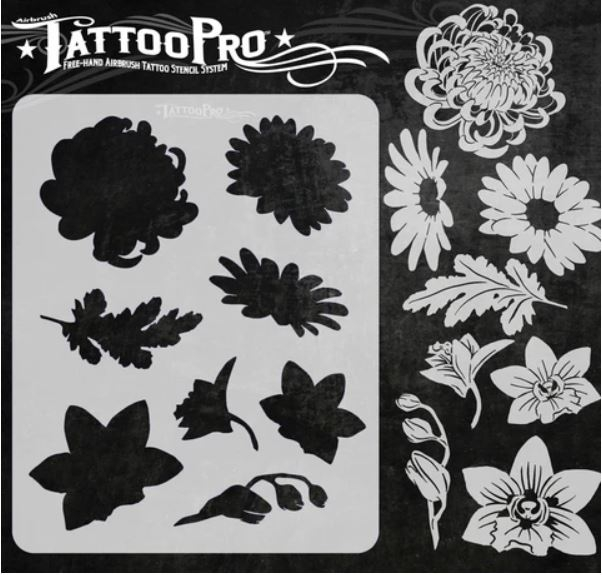 Wiser’s Airbrush TattooPro Stencil – Pretty Flowers zijn Airbrush sjablonen speciaal ontworpen door Bodypaint en Graffiti artist Wiser Oner. Van de sjablonen kun je zowel de positieve als de negatieve delen gebruiken, als je ze uit het vel drukt. Eindeloos te combineren met de andere TattooPro stensils, zodat er iedere keer weer een originele Airbrush Tattoo ontstaat.
