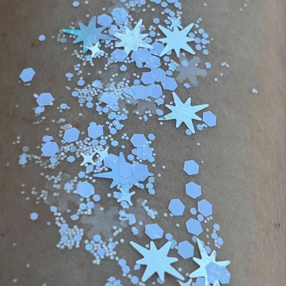 De FDA keurt het gebruik van dikke glitter voor oogmake-up niet goed. Vermijd direct contact met oogleden. De glitters in de verepakking hebben verschillende groottes, ook wel Chunky Glitter genoemd, Dit is een cosmetische glitter voor toepassingen bij een facepaint, schmink creatie, festival glitter, in het haar, extreme make-up en nog veel meer.