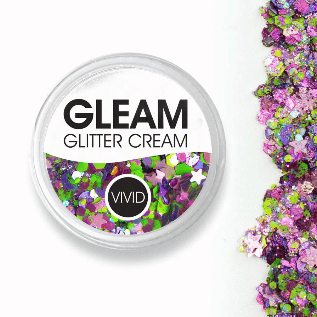 Verkrijgbaar in ieders favoriete Vivid Glitter chunky mixen, onze unieke crèmebasis is snel en gemakkelijk aan te brengen op de huid om oogverblindende schittering op elk gezicht te krijgen. Het gaat soepel en zal je schmink of make-up creatie niet uitsmeren. Het droogt niet uit zoals de typische glittergels en is ook zeer stabiel in warme en koude klimaten. Het product is nu verkrijgbaar in paletten!