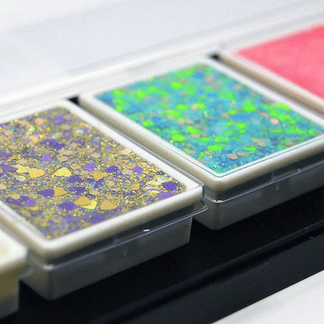 Verkrijgbaar in ieders favoriete Vivid Glitter chunky mixen, onze unieke crèmebasis is snel en gemakkelijk aan te brengen op de huid om oogverblindende schittering op elk gezicht te krijgen. Het gaat soepel en zal je schmink of make-up creatie niet uitsmeren. Het droogt niet uit zoals de typische glittergels en is ook zeer stabiel in warme en koude klimaten. Het product is nu verkrijgbaar in paletten!